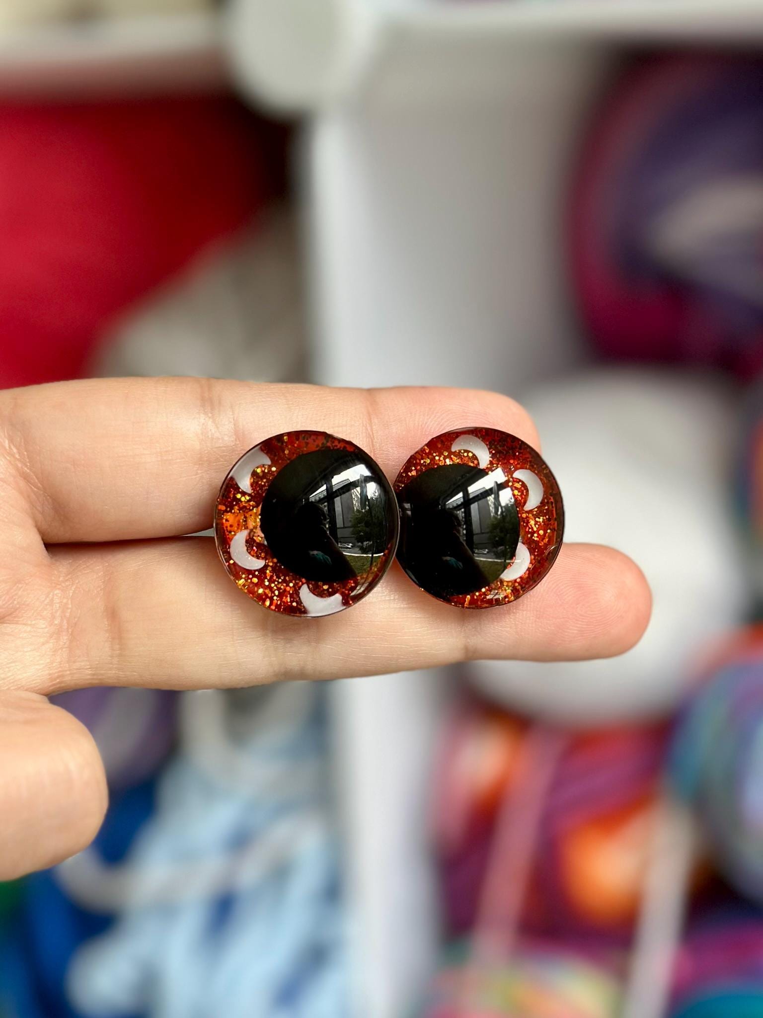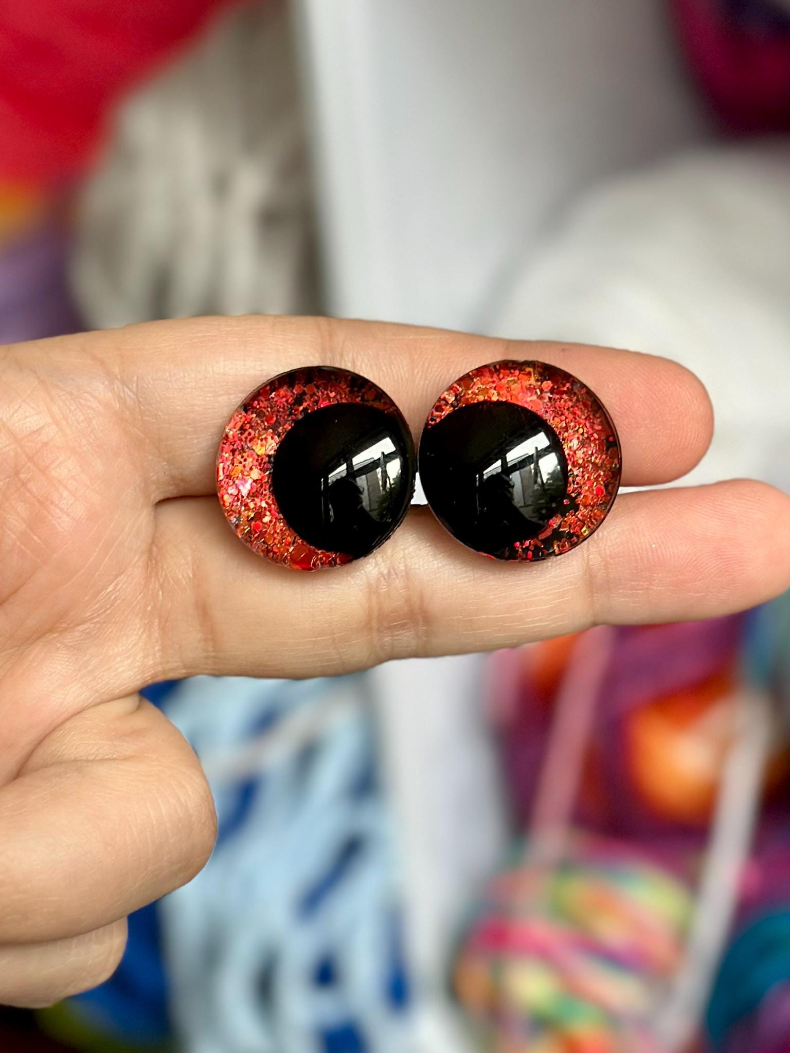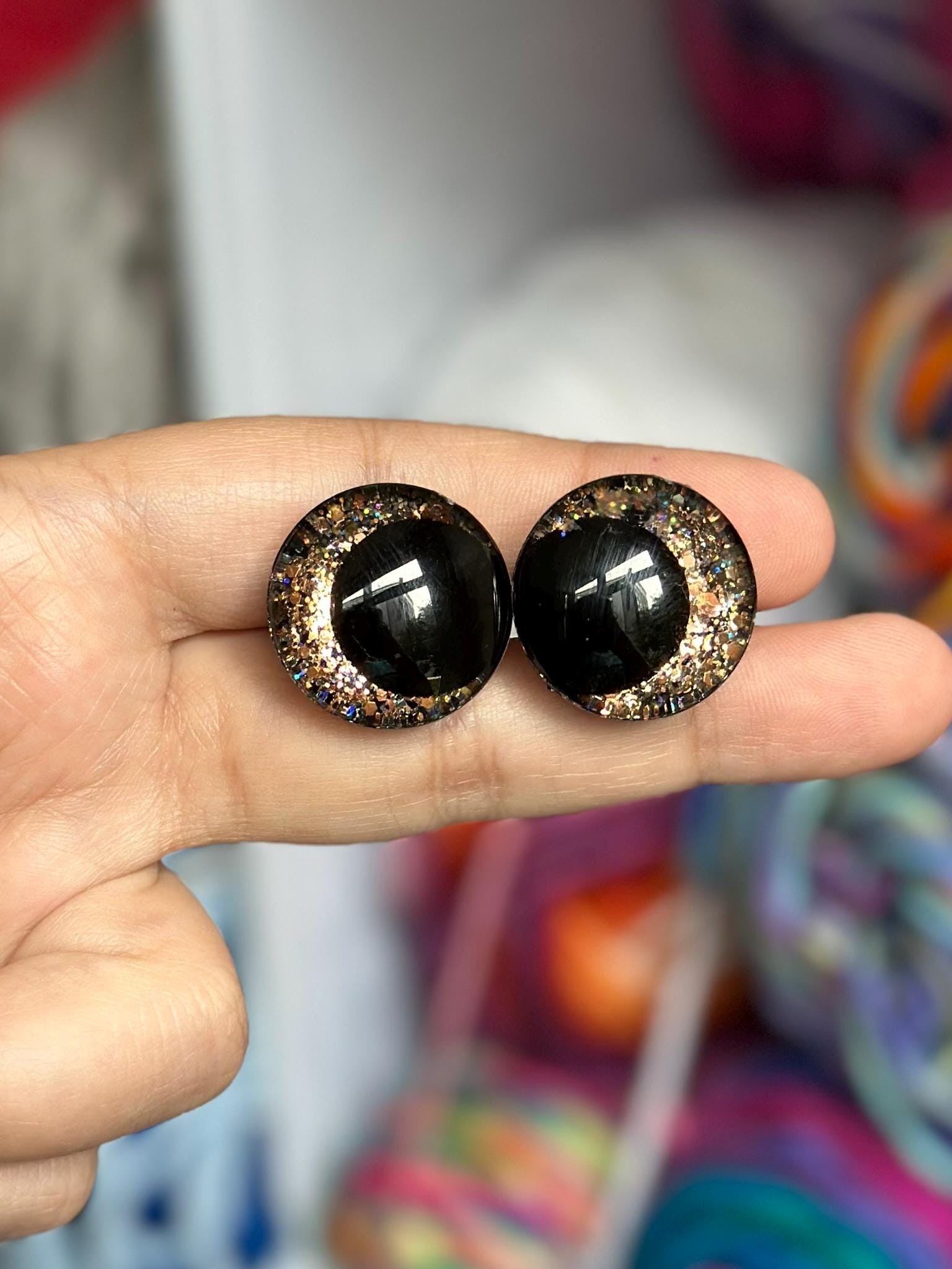 Designed by me and handcrafted to order, these fun safety eyes are sure to make you stand out at your holiday markets! This listing is for one pair (2 eyes total) of handcrafted safety eyes designed by me with appropriate backings for each eye. These specialty eyes are handmade to order and they will be shipped 1-2 weeks from purchase. I do offer combined shipping - shipping is $4.40 for your first pair of eyes and $0.50 for every pair ordered after that. If you don't see the eye options you want, please contact me - custom eyes are available!