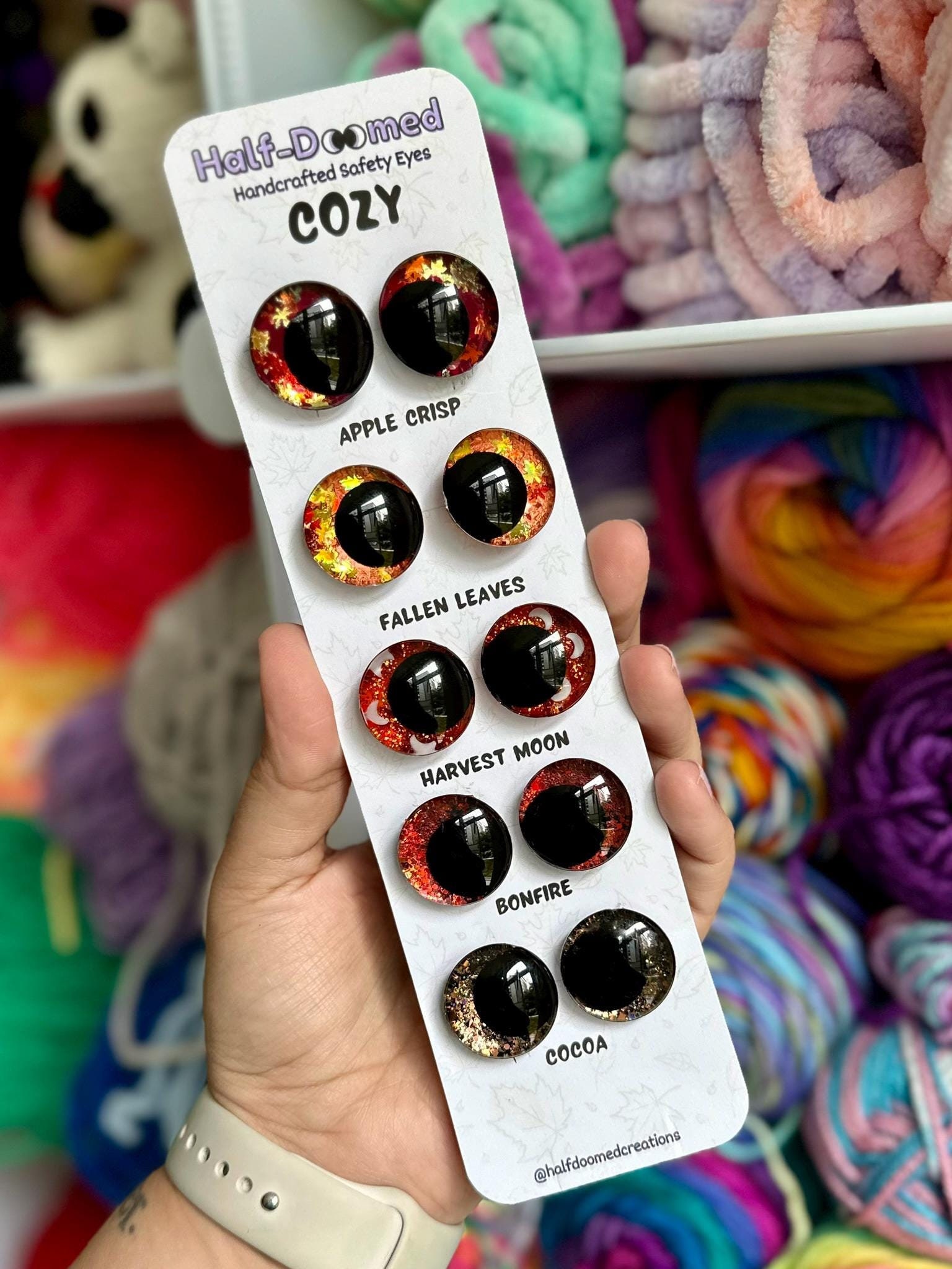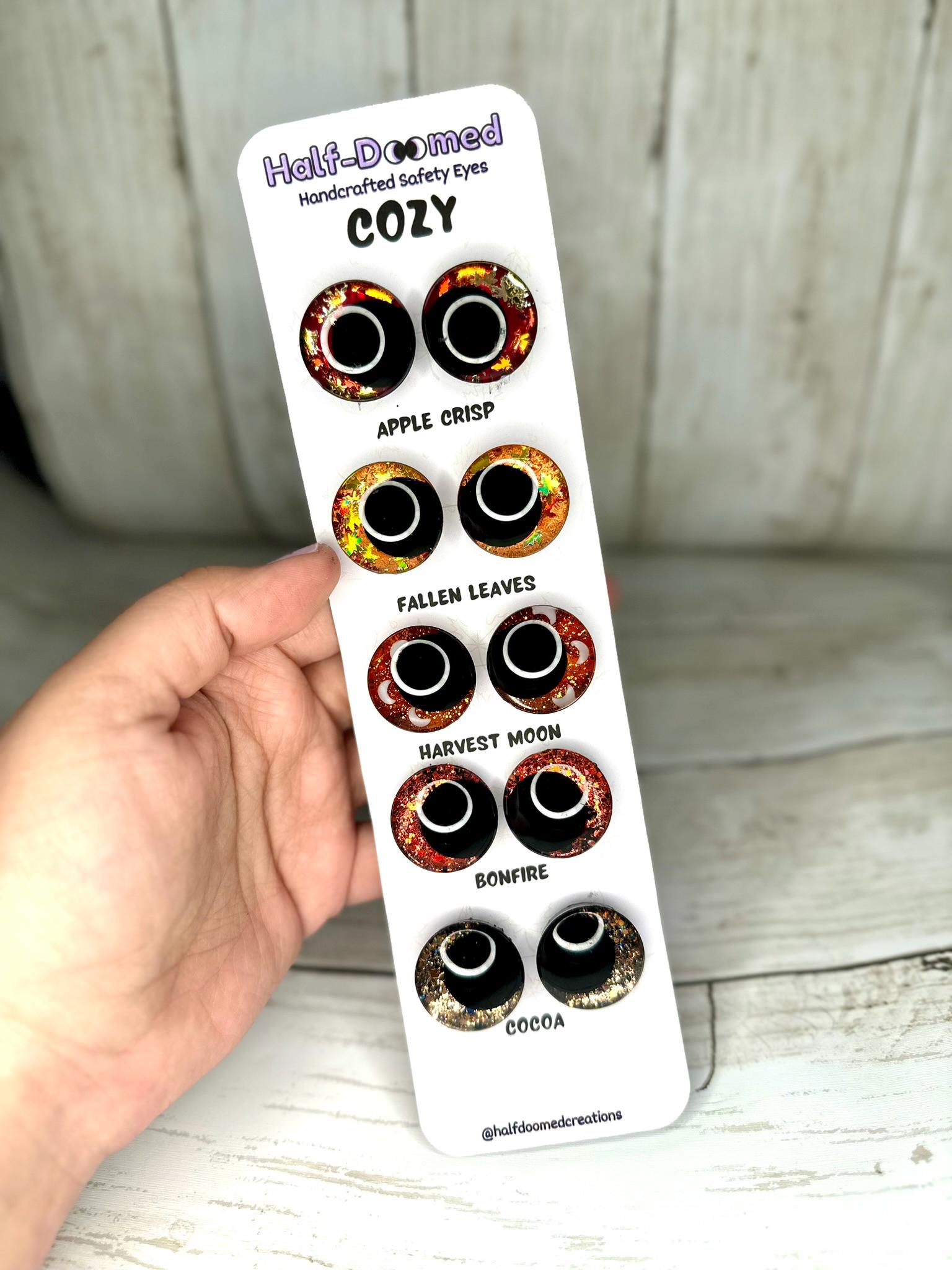 Introducing the limited edition Cozy collection! Add a special autumn touch to your plushie or stuffed animal creation with a unique high-quality pair of kawaii safety eyes! This collection of five specialty designs is available in limited quantities in 25mm and 30mm sinkers.