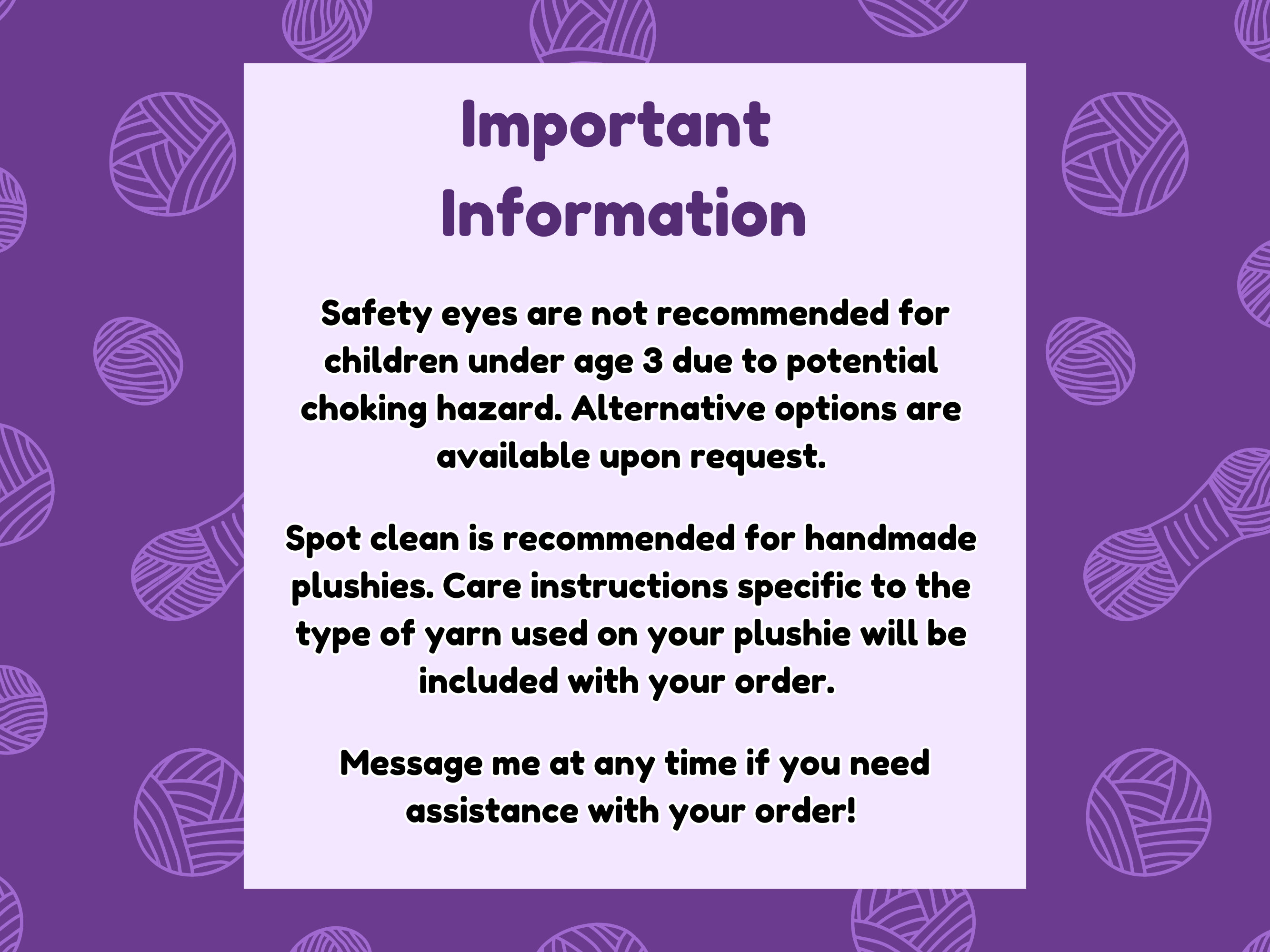 *Warning: Safety eyes are not recommended for children under age 3 due to choking hazard. Please contact me if you'd like to discuss alternative options.