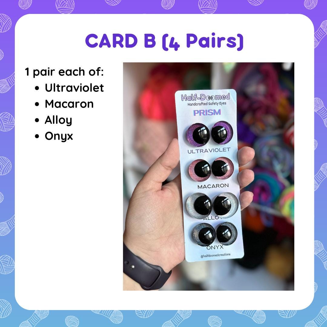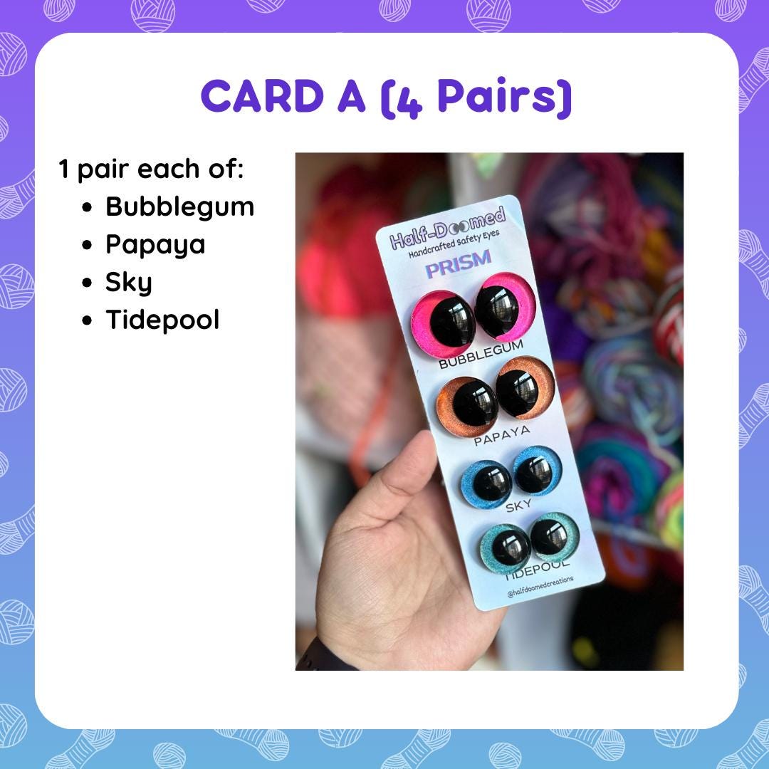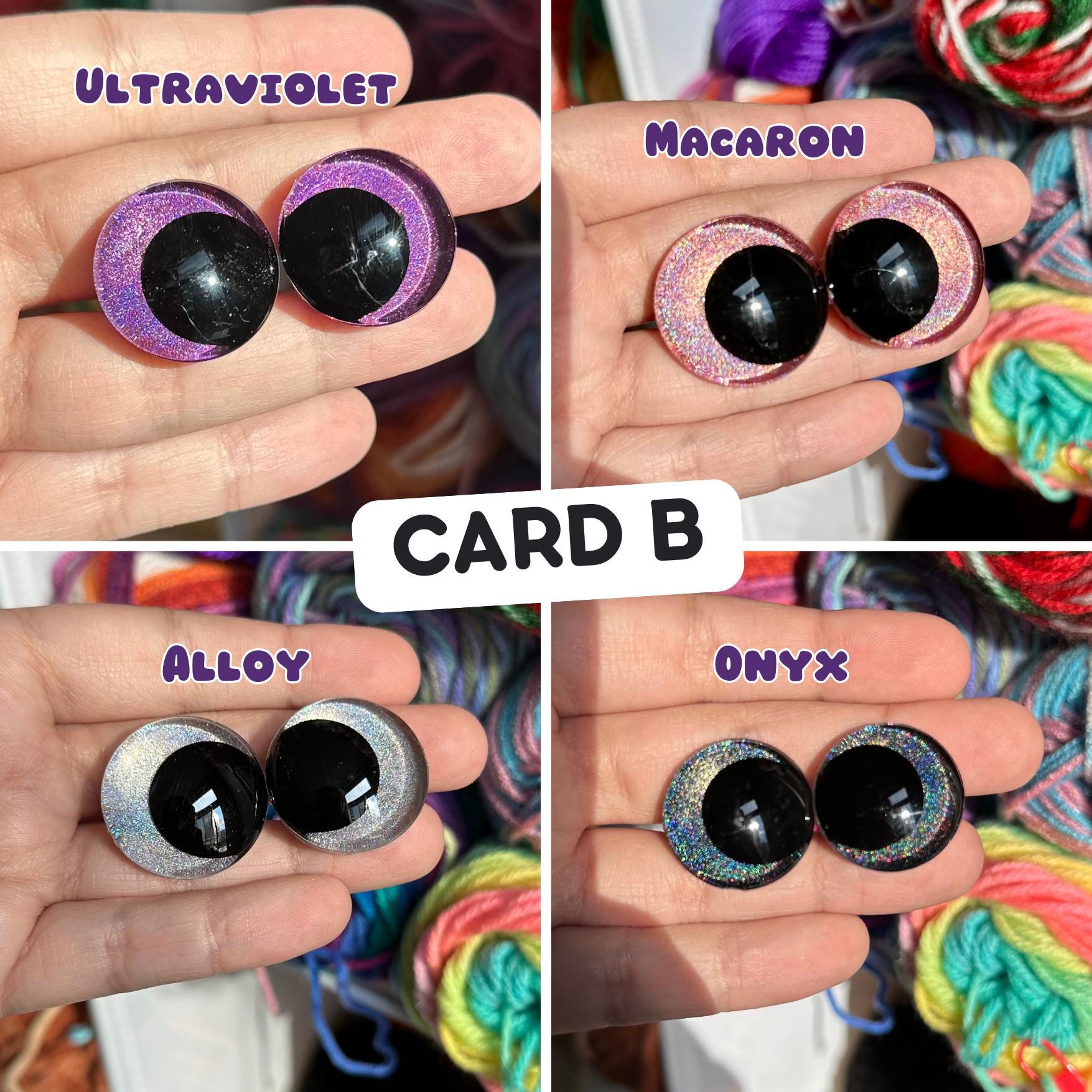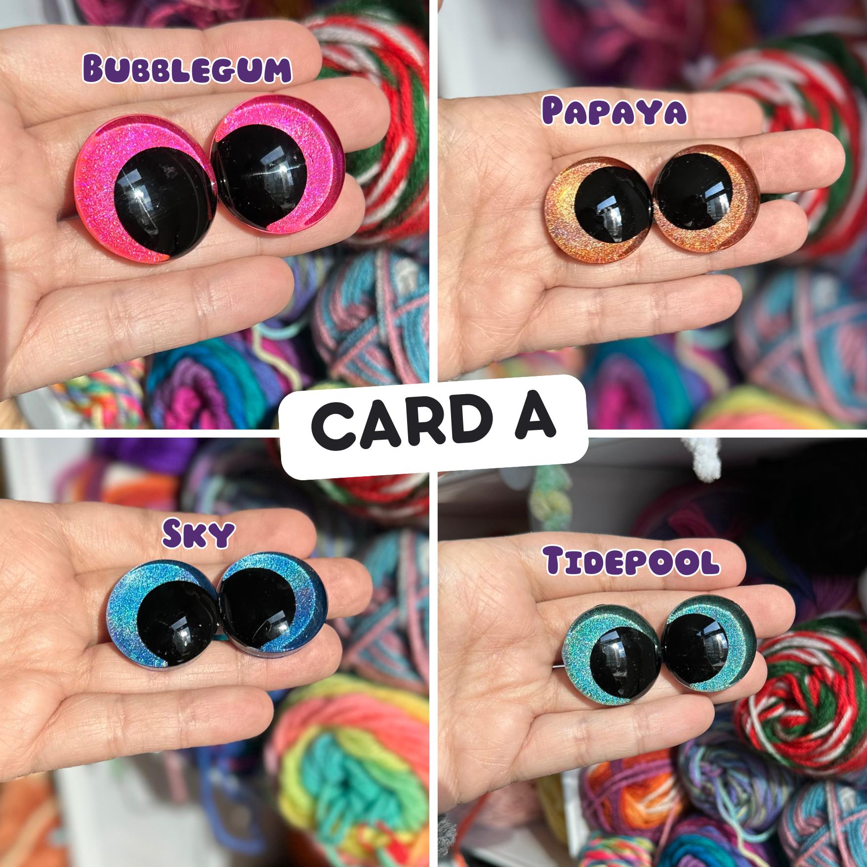 This listing is for bulk purchases - you can purchase a half card (4 pairs) or a full set (8 pairs) of sinker safety eyes in either 25mm or 30mm. There is a small savings over purchasing individually and the full set is like getting your 8th pair free. These specialty eyes will ship in 2-5 business days. If you would rather purchase by the pair, please check out the single pair listings in my shop!